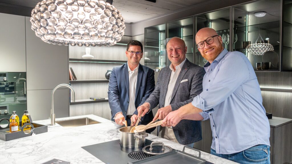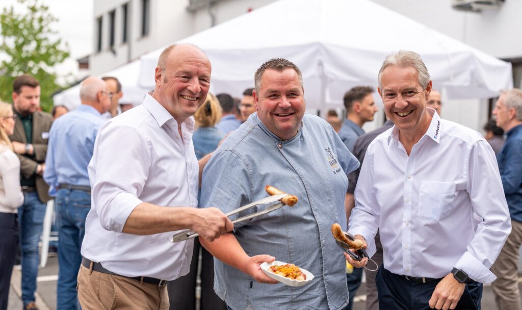 Co-Gastgeber Jörg Heyer (S.L.U. GmbH) l., Stefan A. Wagemanns BVMW) & Gastgeber Ralf Aldenhoven (INperfektion GmbH)