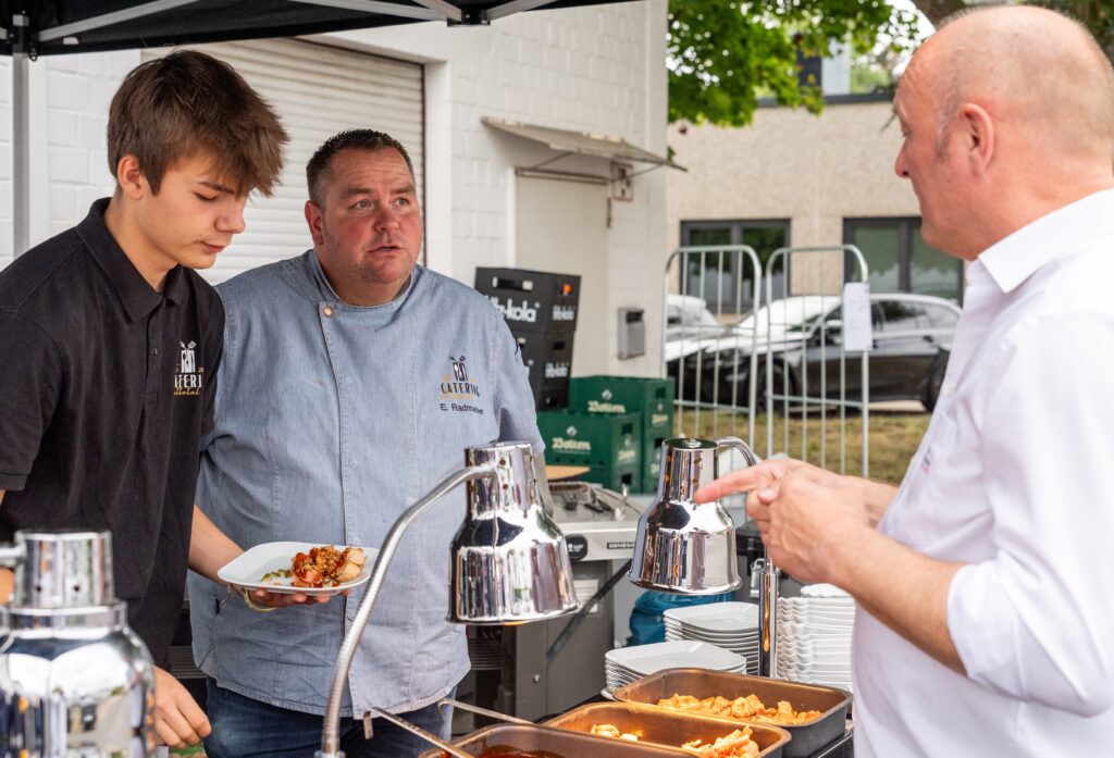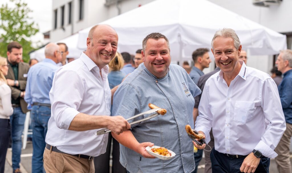 Selbst Bürgermeister Michael Stock kam an den Grill mit dem DEUTSCHEN GRILLMEISTER v. 2018, Erik Radmacher, bei INperfektion GmbH / INspares GmbH nach Wegberg.