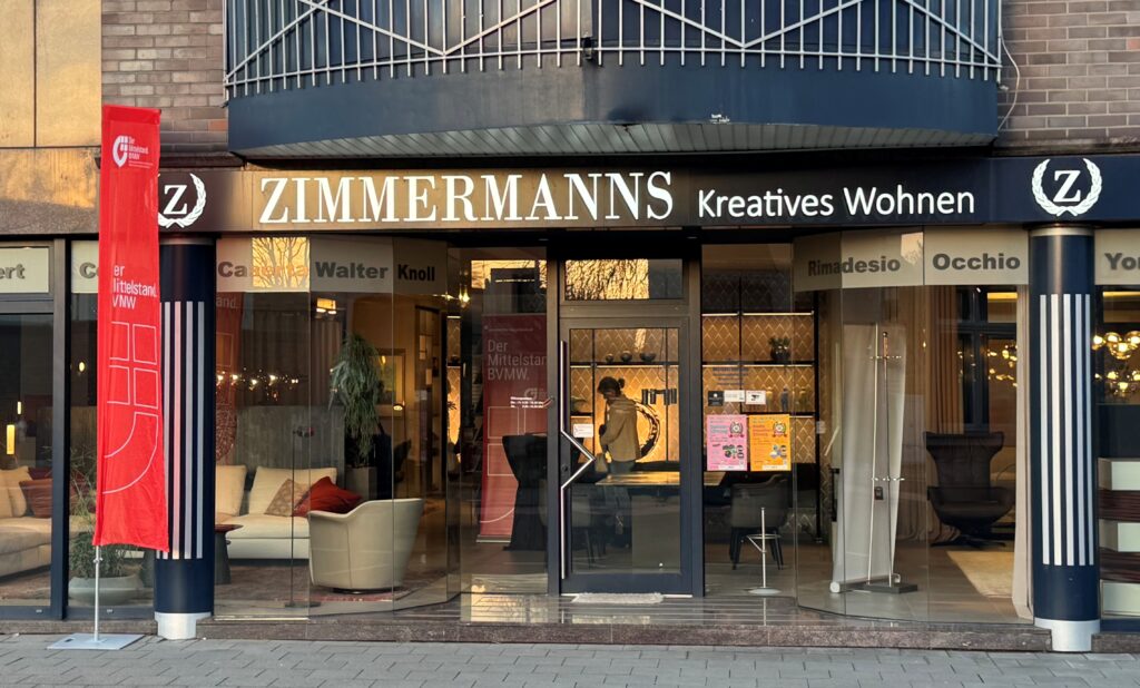 Frank (Innenarchitekt) und Yannick Zimmermanns führten die Gäste zudem durch den Showroom und erklärten anschaulich jene Teile ihres Geschäftsfeldes, die sich nicht auf den ersten Blick erschließen – etwa die Geschichten, Materialien und handwerklichen Prozesse hinter vielen besonderen Möbelstücken – und eben Innenarchitektur aus einer Hand.