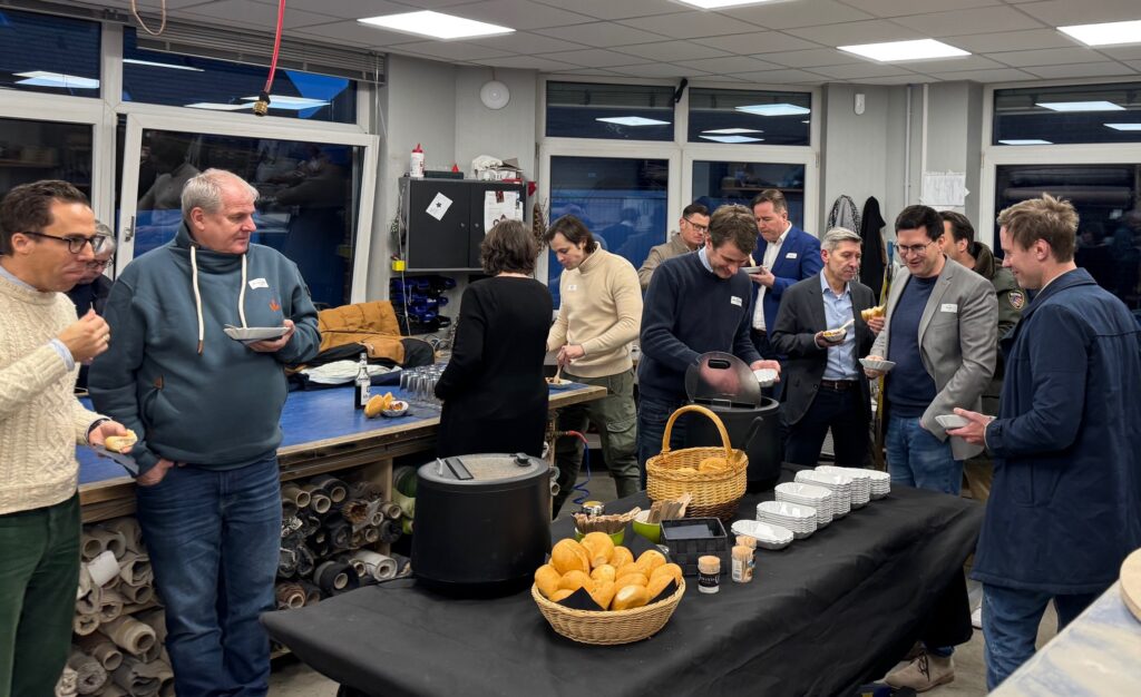 Die Teilnehmenden erlebten eine hochengagierte Unternehmerfamilie, die nicht nur bei der Zubereitung einer hervorragenden Currywurst vollen Einsatz zeigte. Susanne, Frank und Sohn Yannick Zimmermanns hatten in ihre Geschäftsräume nach Mönchengladbach-Wickrath eingeladen.
